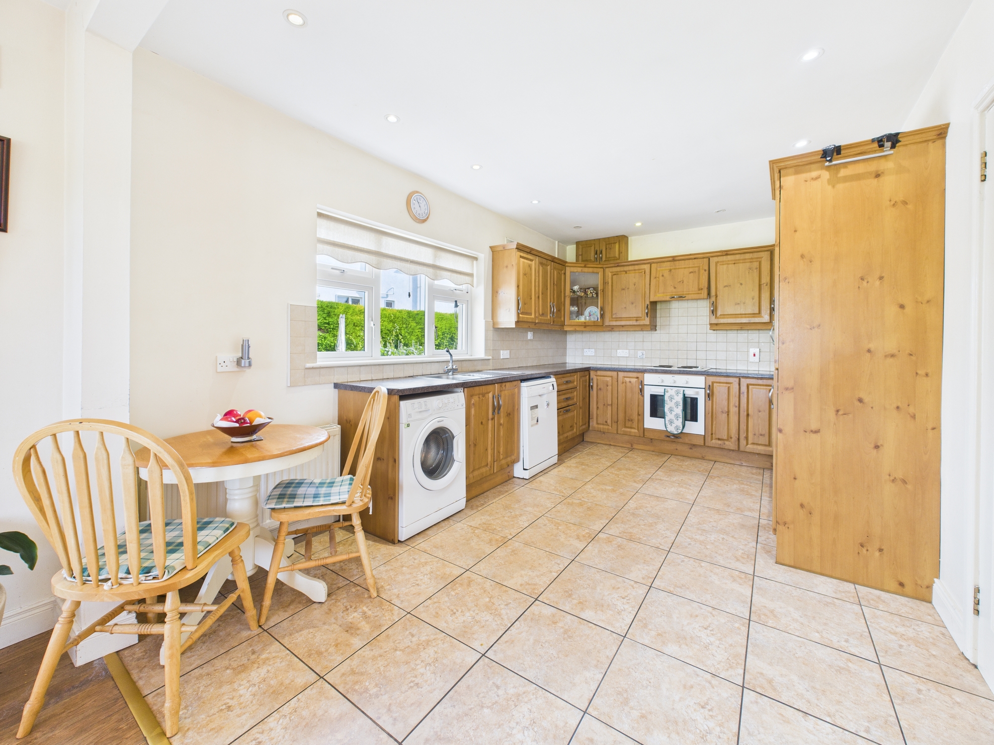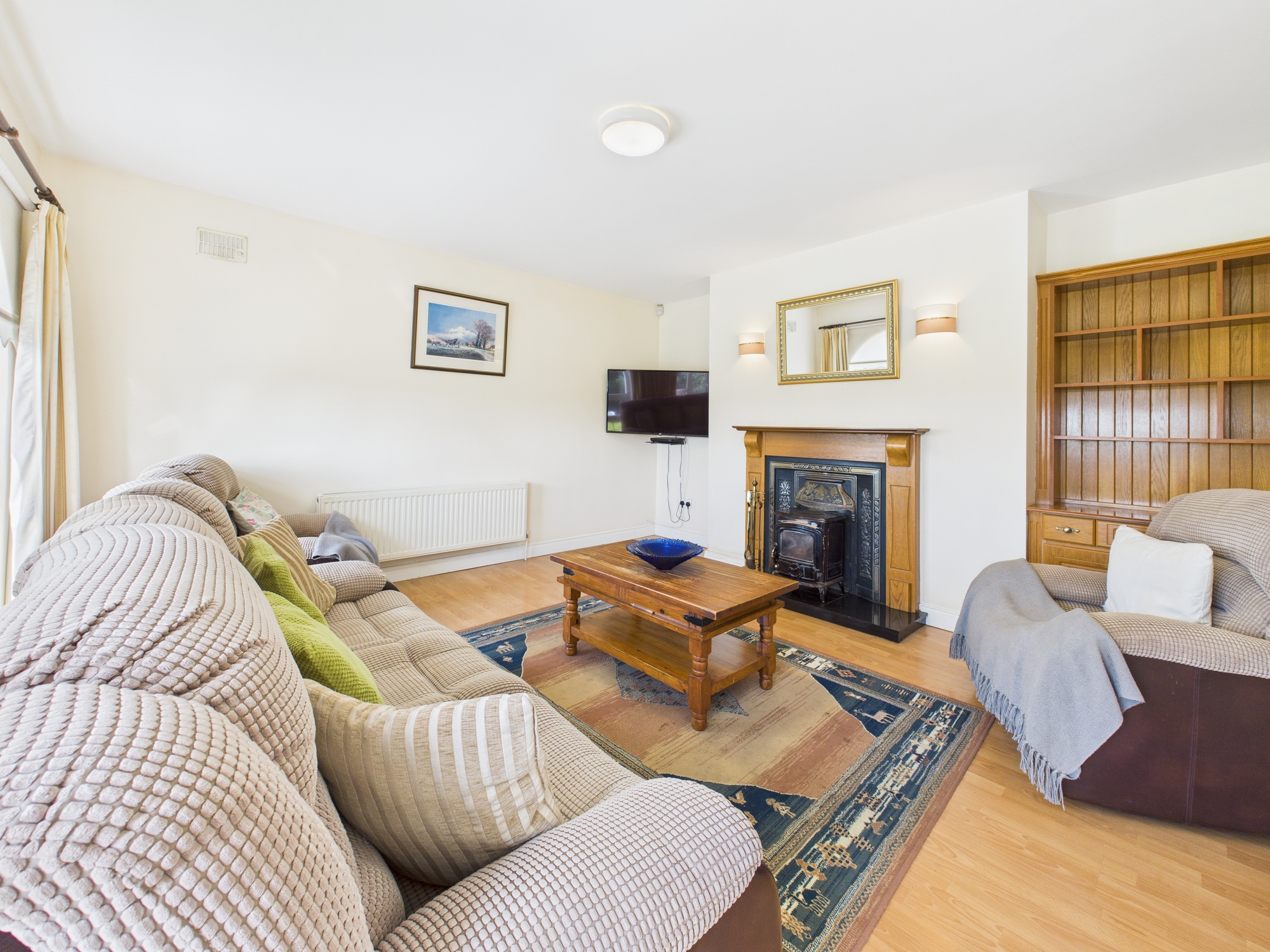 Step inside to find bright, well-proportioned accommodation finished to an excellent standard. The welcoming entrance patio hallway leads to a spacious sitting room featuring a solid fuel stove with pine surround mantle and decorative insertâ??the perfect retreat for cosy evenings. The kitchen/dining area is equally impressive, complete with fitted wall and floor units, a solid fuel stove with charming brick fire surround, and direct access through patio doors to the rear garden.