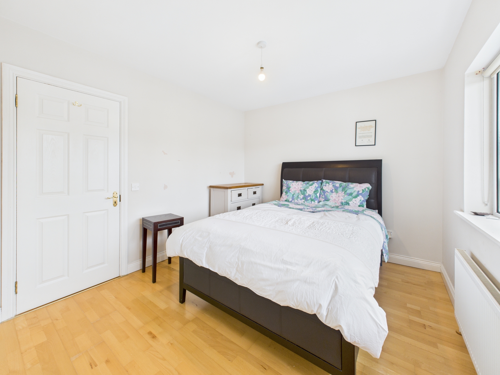32 The Spinney is a charming two-bedroom mid-terraced townhouse, perfectly positioned in the ever-popular estate of The Spinney in Abbeytown, Roscommon Town. This lovely home is full of character and warmth. Step inside to a bright hallway that leads to a beautifully tiled kitchen, ideal for preparing family meals. The spacious sitting room features an inviting open fire, creating the perfect spot for cosy evenings at home. French doors allow natural light to flood the room and open onto a private back garden, complete with secure panel fencing, a well-kept lawn, and a practical garden shed.