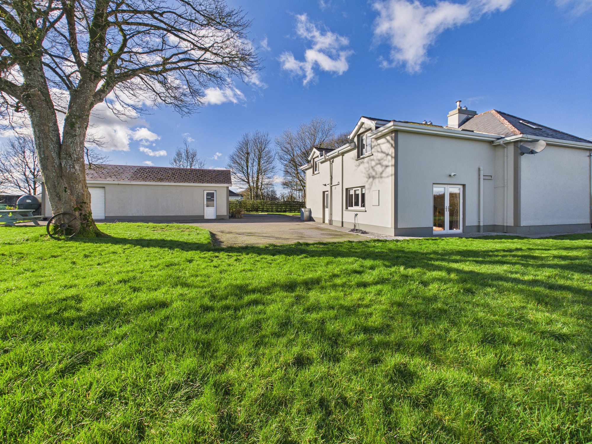 Externally, the home is surrounded by mature lawns and an attractive array of shrubs, flowers and trees that enhance the sense of privacy and tranquillity. A substantial detached garage to the rear offers excellent storage and presents potential for a variety of additional uses. The property enjoys a quiet and peaceful rural setting, yet remains just 9km from Roscommon town and the full range of amenities it has to offer. It is also in close proximity to Kilbride Community Centre, Scoil Bhríde and the local church, making it an ideal family home that perfectly balances countryside charm with excellent convenience to essential services and community facilities.