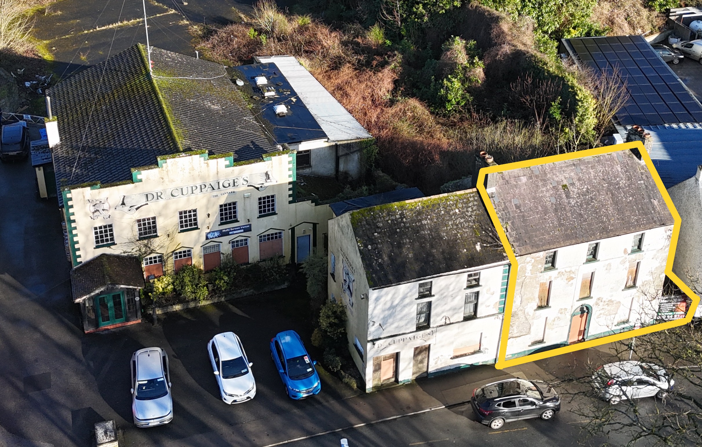 Formerly known as Dr. Cuppaiges and associated buildings, this substantial holding occupies a prime location within the heart of Moate town and presents significant potential for restoration and repurposing.