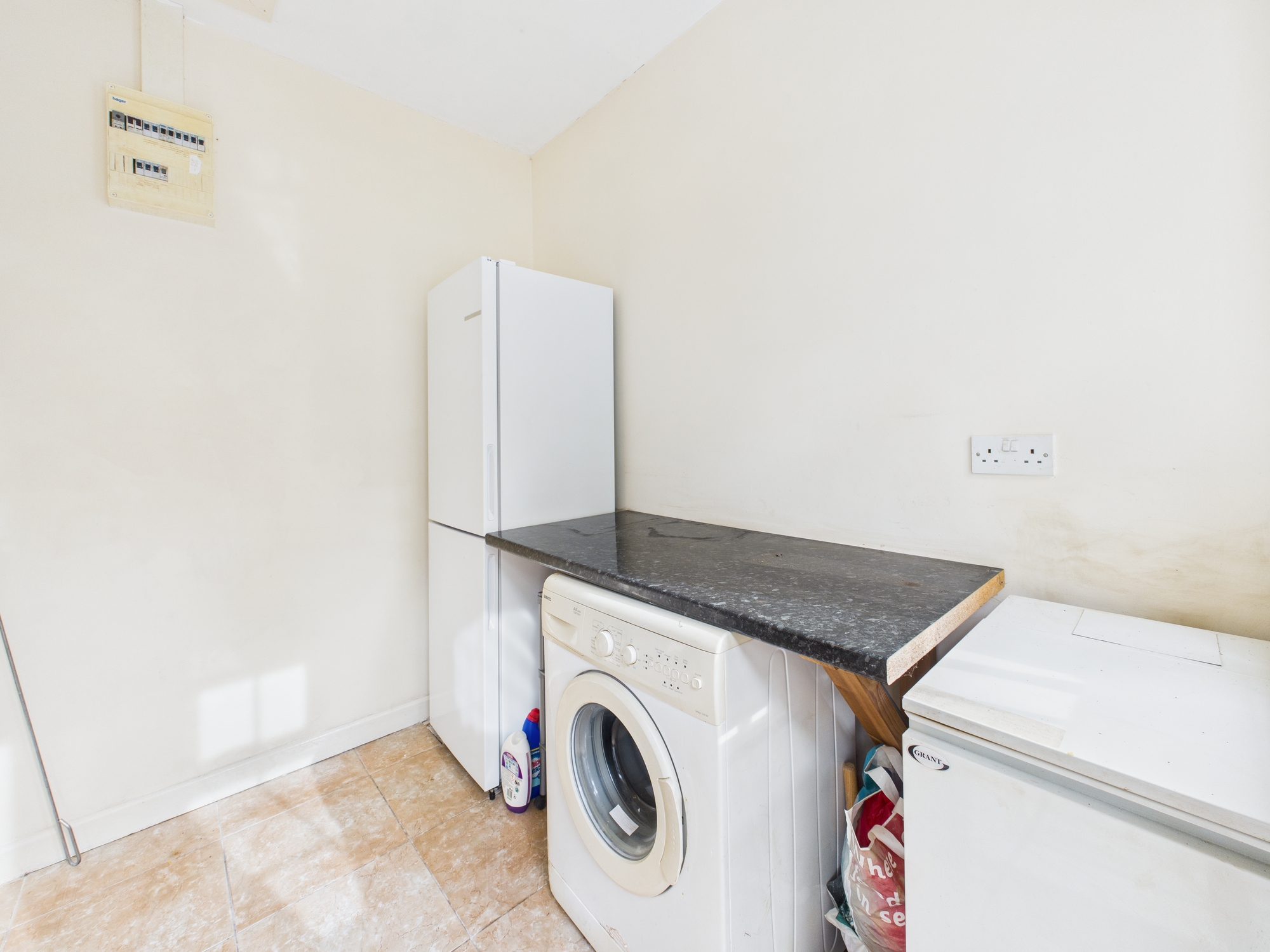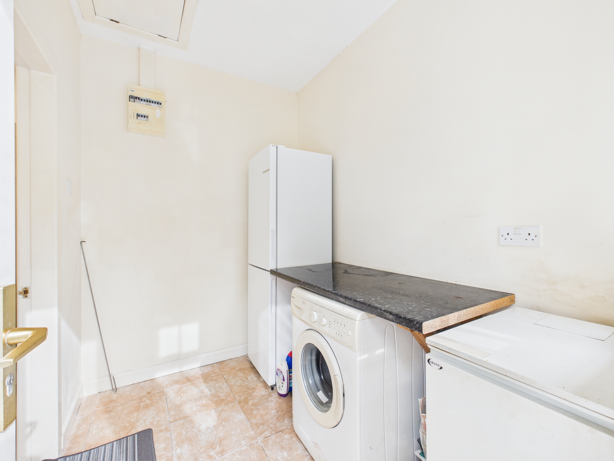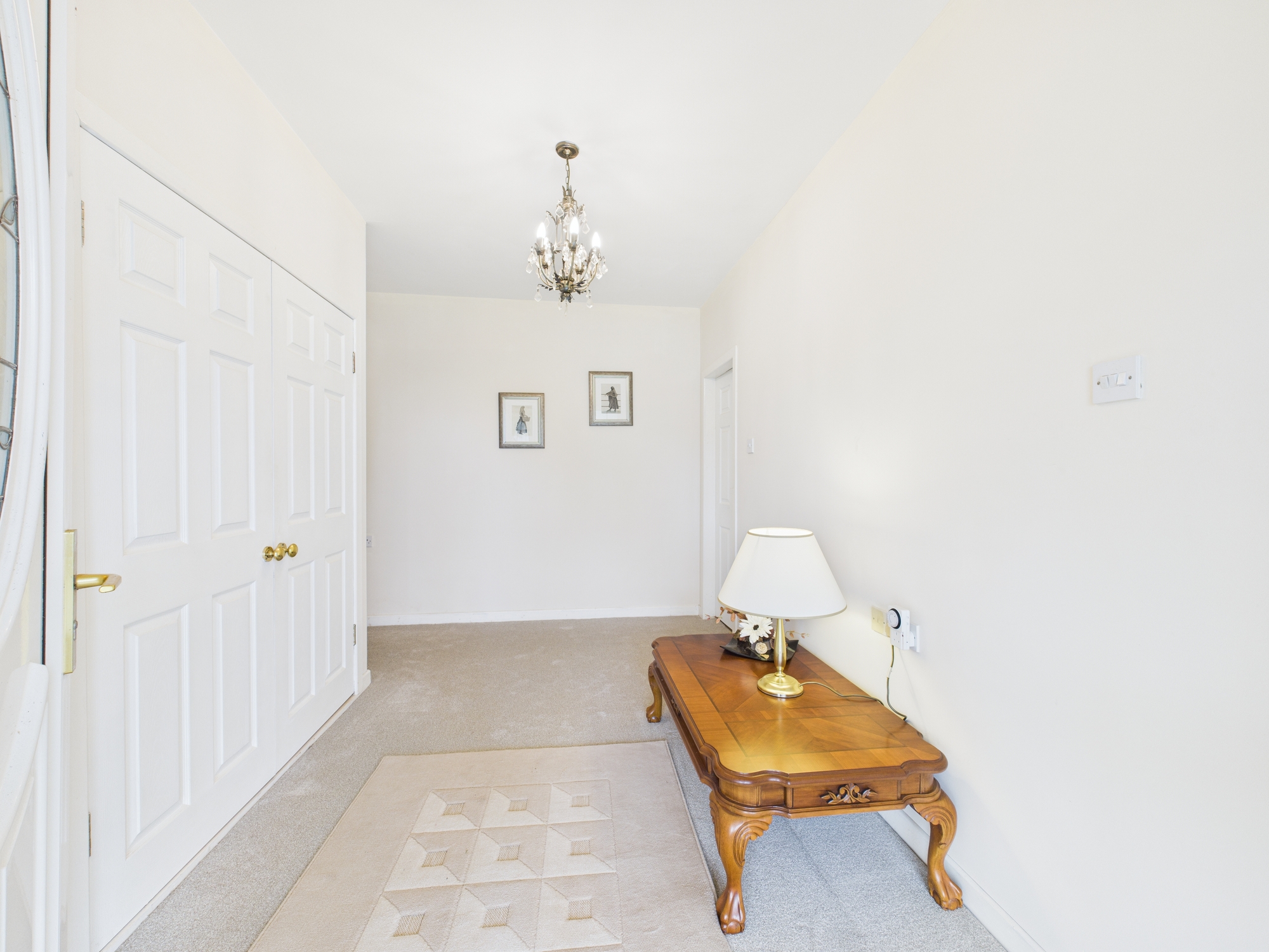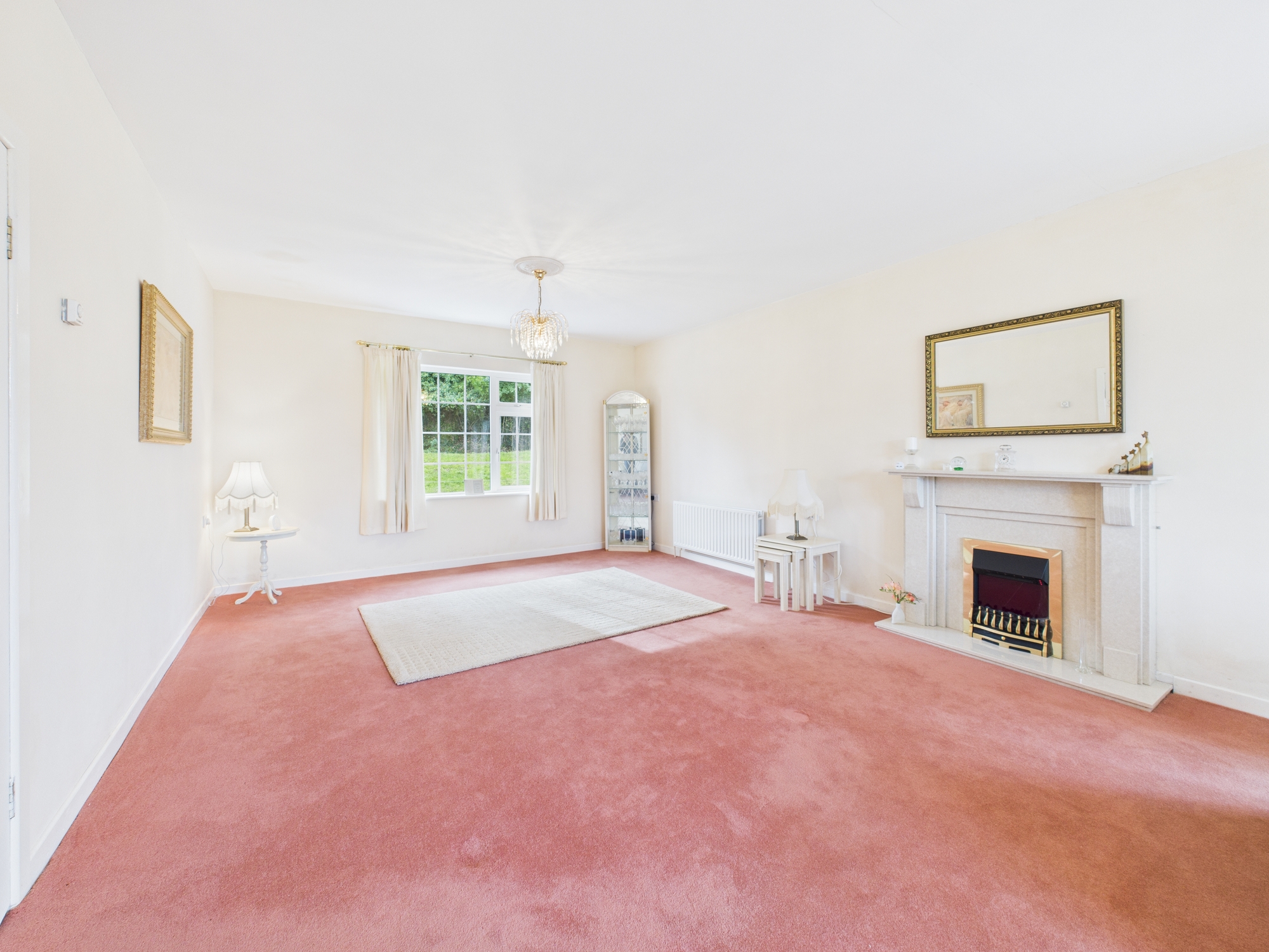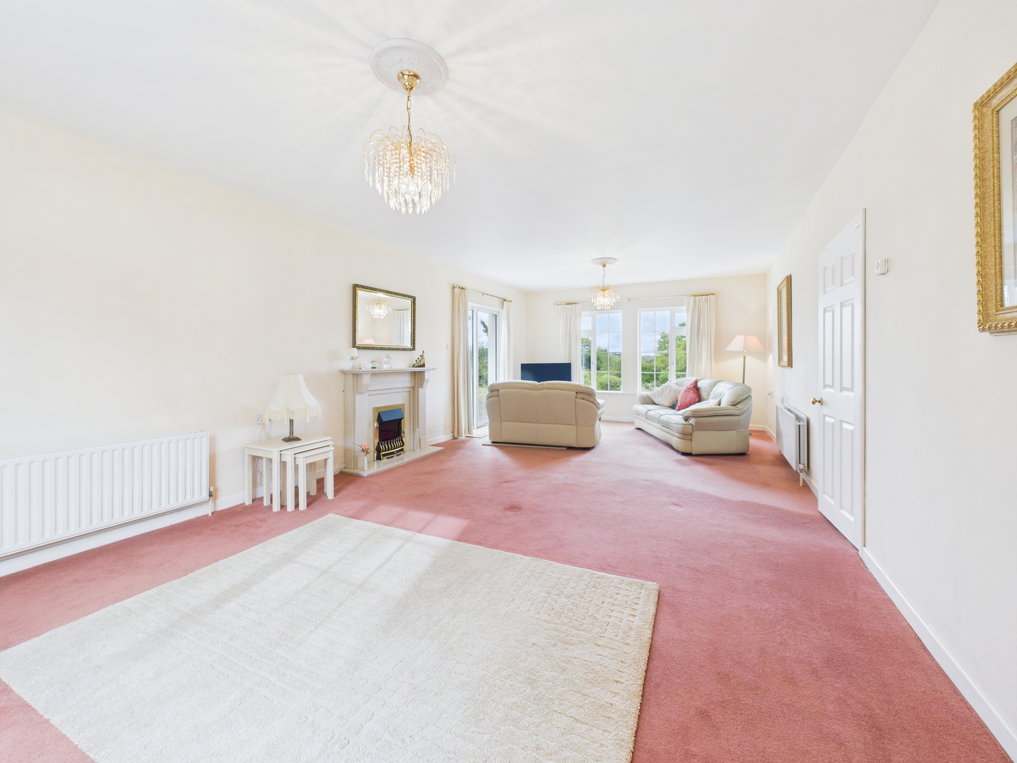 Built in 1998 and extending to approximately 1,681 sq. ft, this spacious home offers well-appointed accommodation throughout. The welcoming entrance hallway includes a built-in cloakroom, leading to a bright and expansive sitting room featuring two large windows, French doors, and a striking feature fireplace. The tiled kitchen is fitted with ample storage cabinets, display units, and recessed ceiling lighting, while the adjoining utility room provides additional countertop space and laundry facilities.