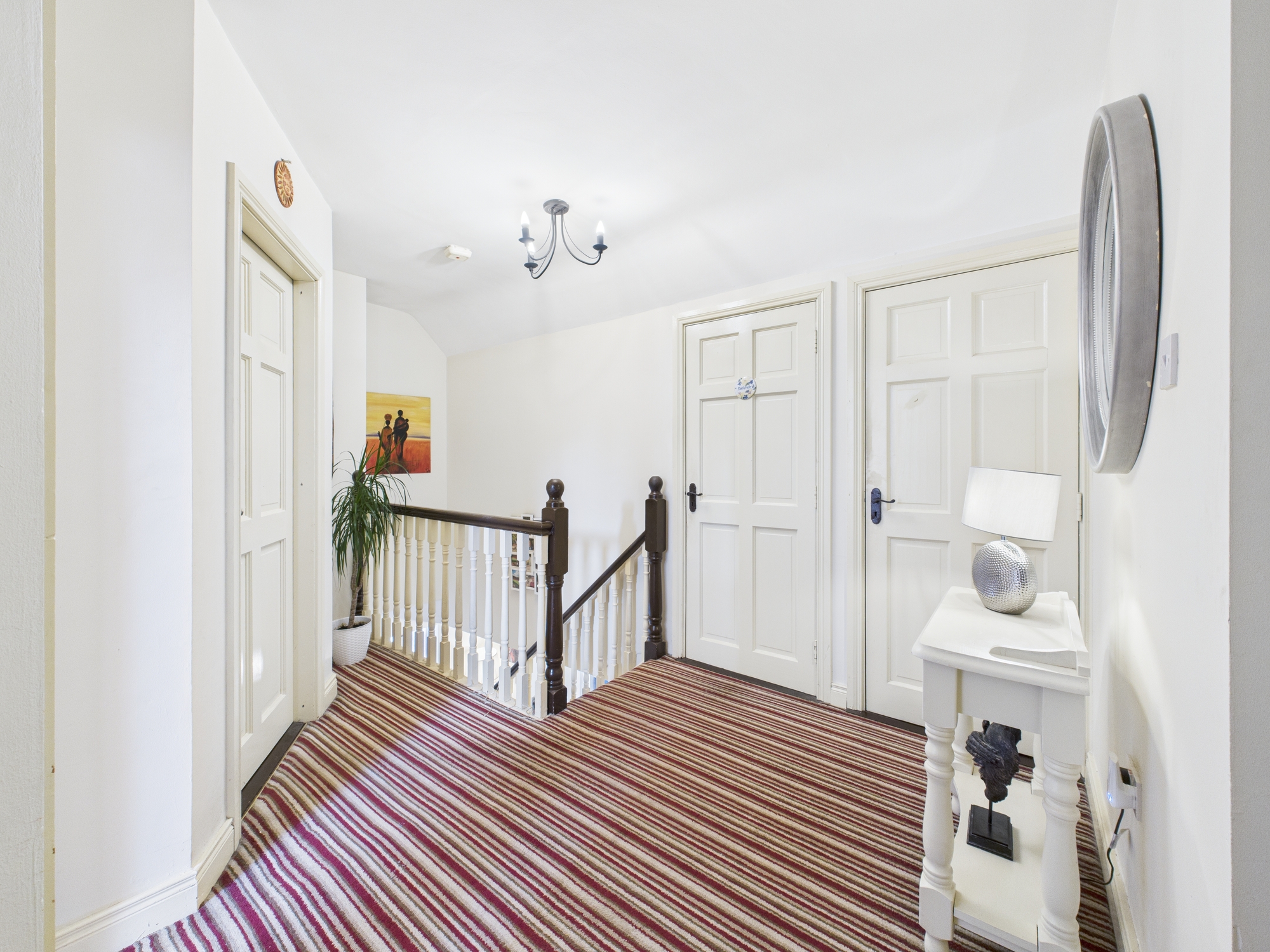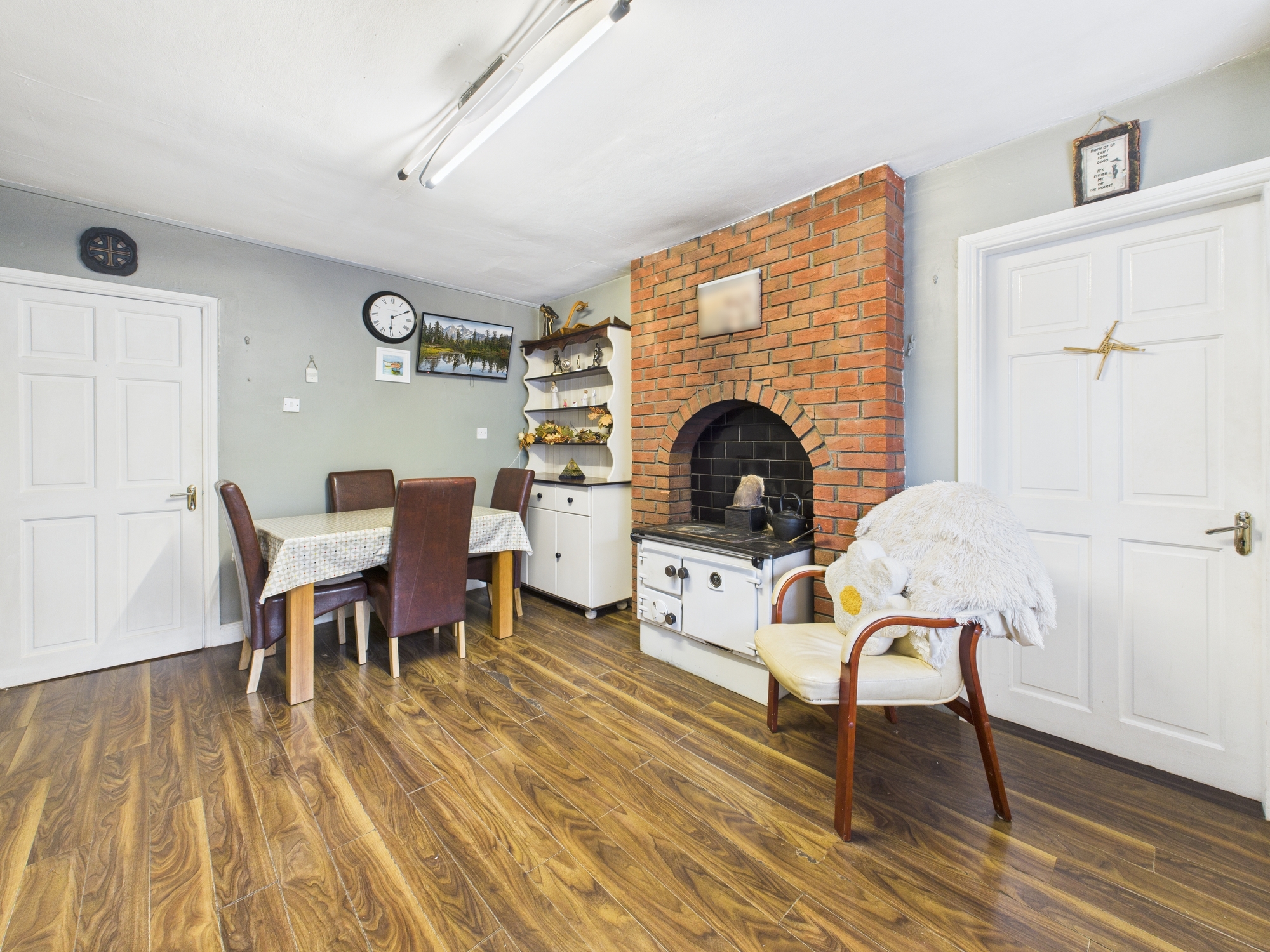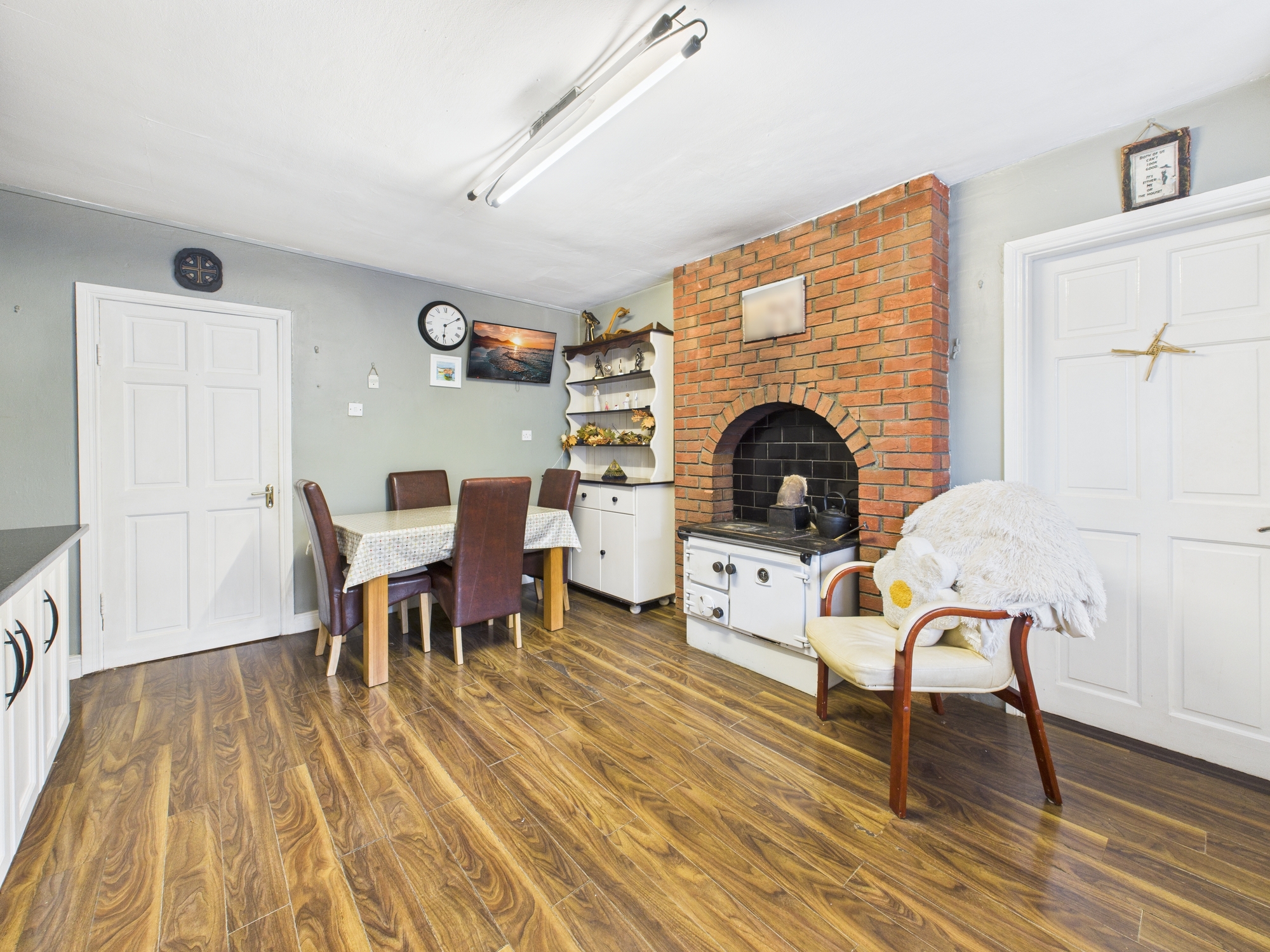 The accommodation is thoughtfully designed to suit family life. A bright and welcoming hallway leads to a spacious sitting room with inset stove, creating a cosy heart to the home. The kitchen carries a warm country charm, complete with Stanley range and adjoining utility room with convenient side access. Also on the ground floor are two well-proportioned double bedrooms with fitted wardrobes and a full bathroom with shower, making the property versatile for families of all ages or those seeking single-level living.