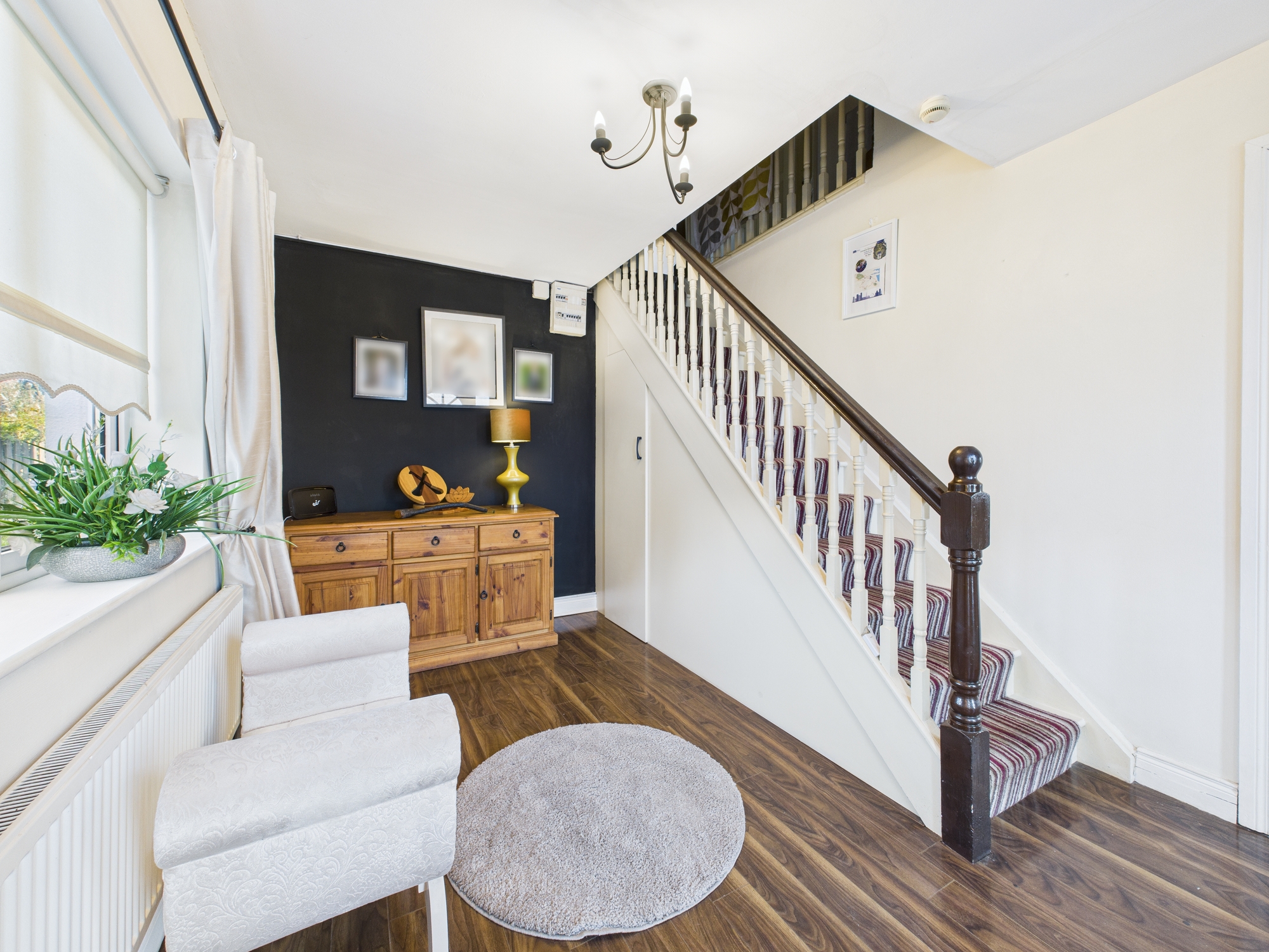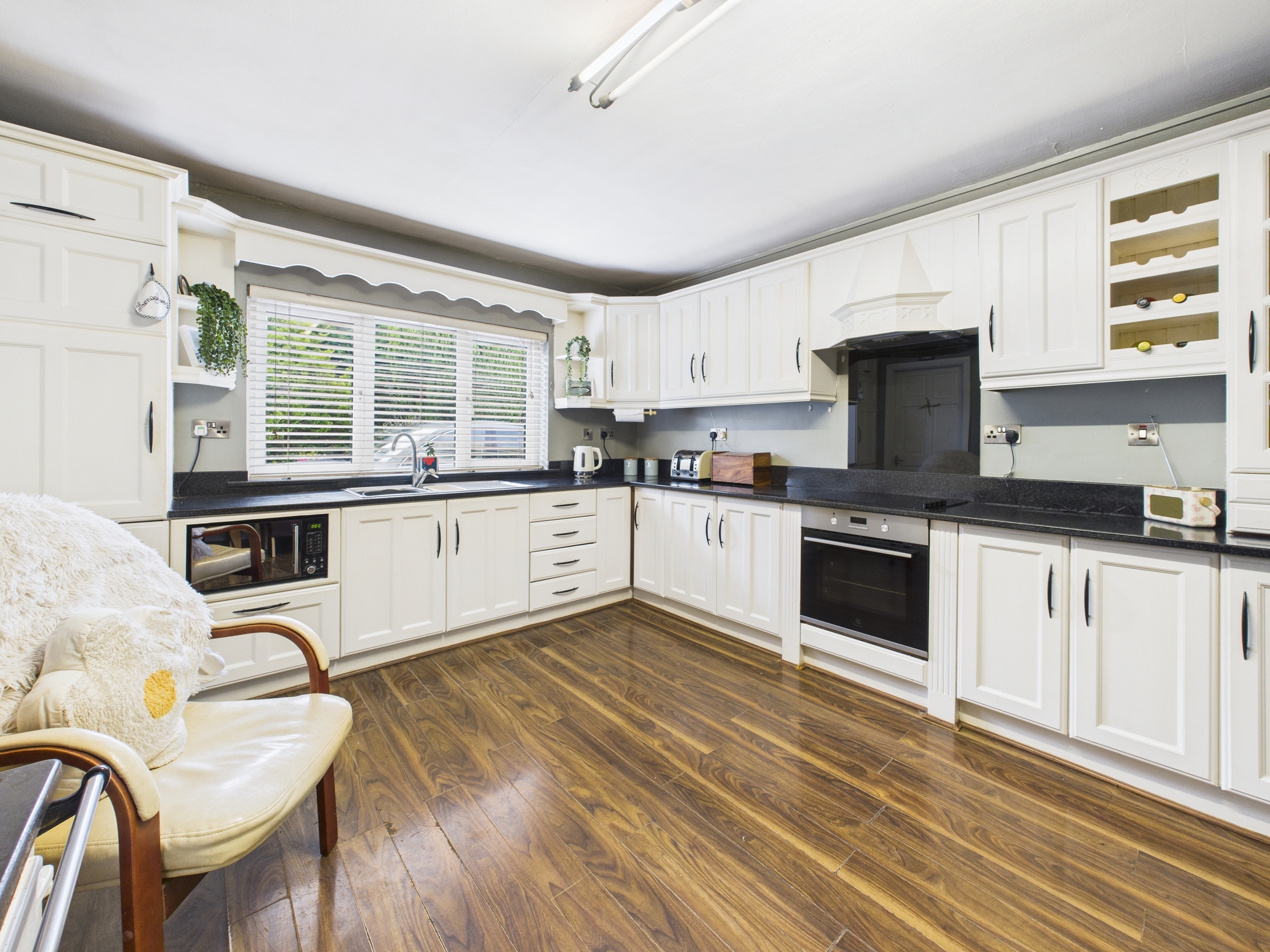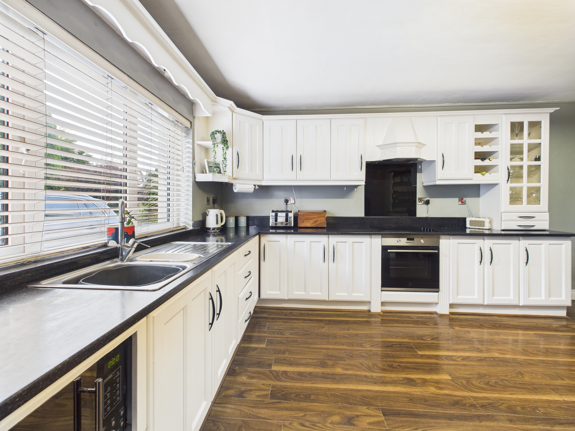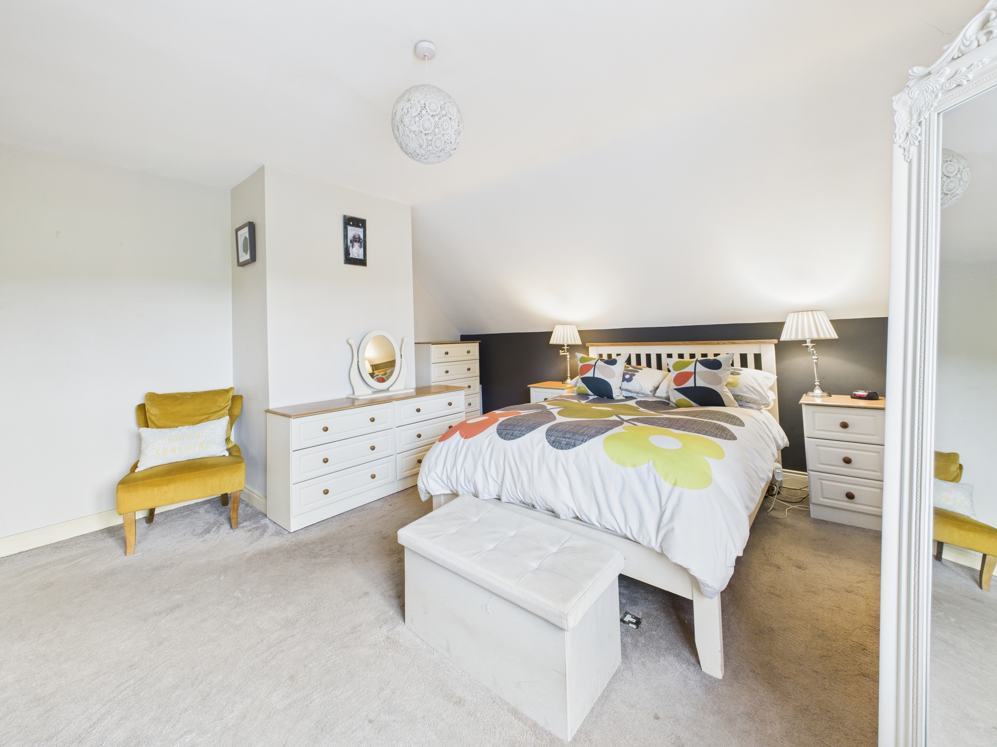 The accommodation is thoughtfully designed to suit family life. A bright and welcoming hallway leads to a spacious sitting room with inset stove, creating a cosy heart to the home. The kitchen carries a warm country charm, complete with Stanley range and adjoining utility room with convenient side access. Also on the ground floor are two well-proportioned double bedrooms with fitted wardrobes and a full bathroom with shower, making the property versatile for families of all ages or those seeking single-level living.