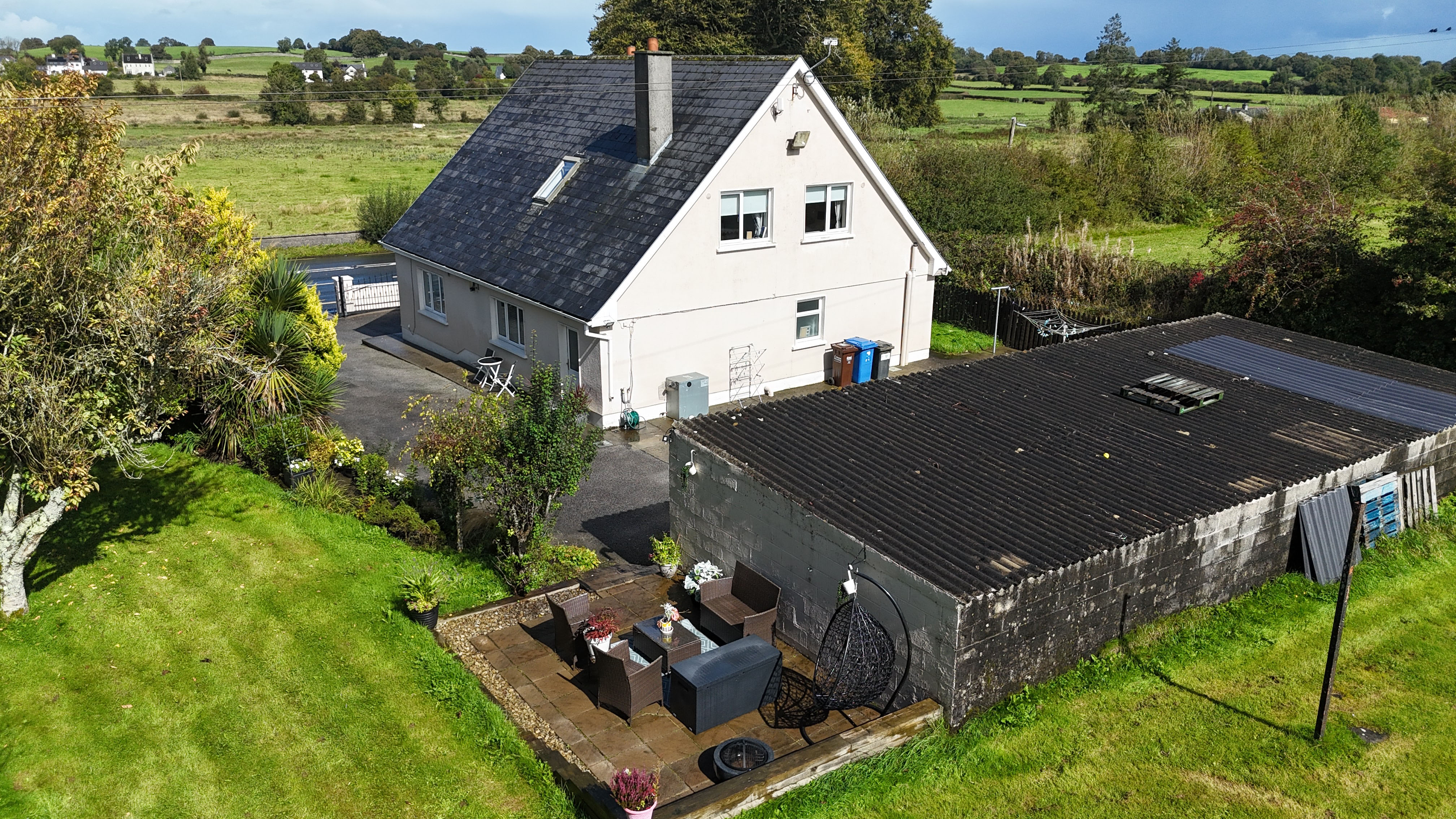 Outside, the property stands on mature landscaped gardens that provide both privacy and potential. A tarmacadam driveway surrounds the house with ample parking, while a sunny patio area is ideal for outdoor dining and summer entertaining. To the rear are three powered sheds, perfect for storage, hobbies, or potential conversion. The private gardens to the side and rear offer a peaceful retreat for gardening, leisure, or gatherings with family and friends.