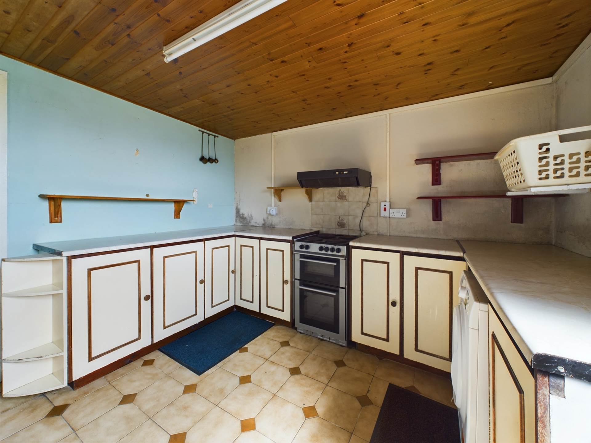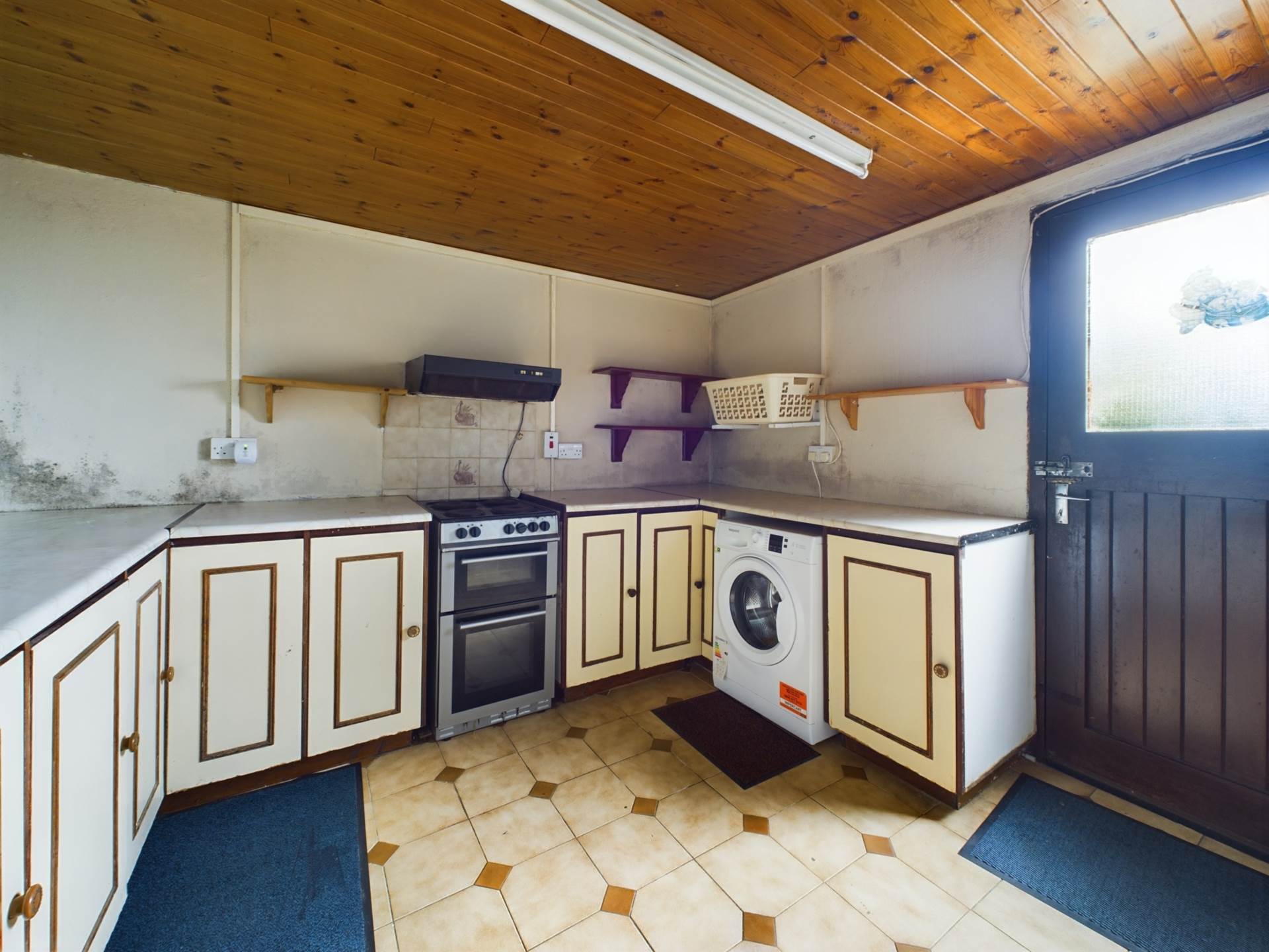 The interior is thoughtfully designed, comprising three spacious bedrooms, a main bathroom, a cozy sitting room, and an inviting living room/dining area that opens to a well-equipped kitchen. Additional amenities include a utility room and an attached garage, offering ample space for storage and practical living.