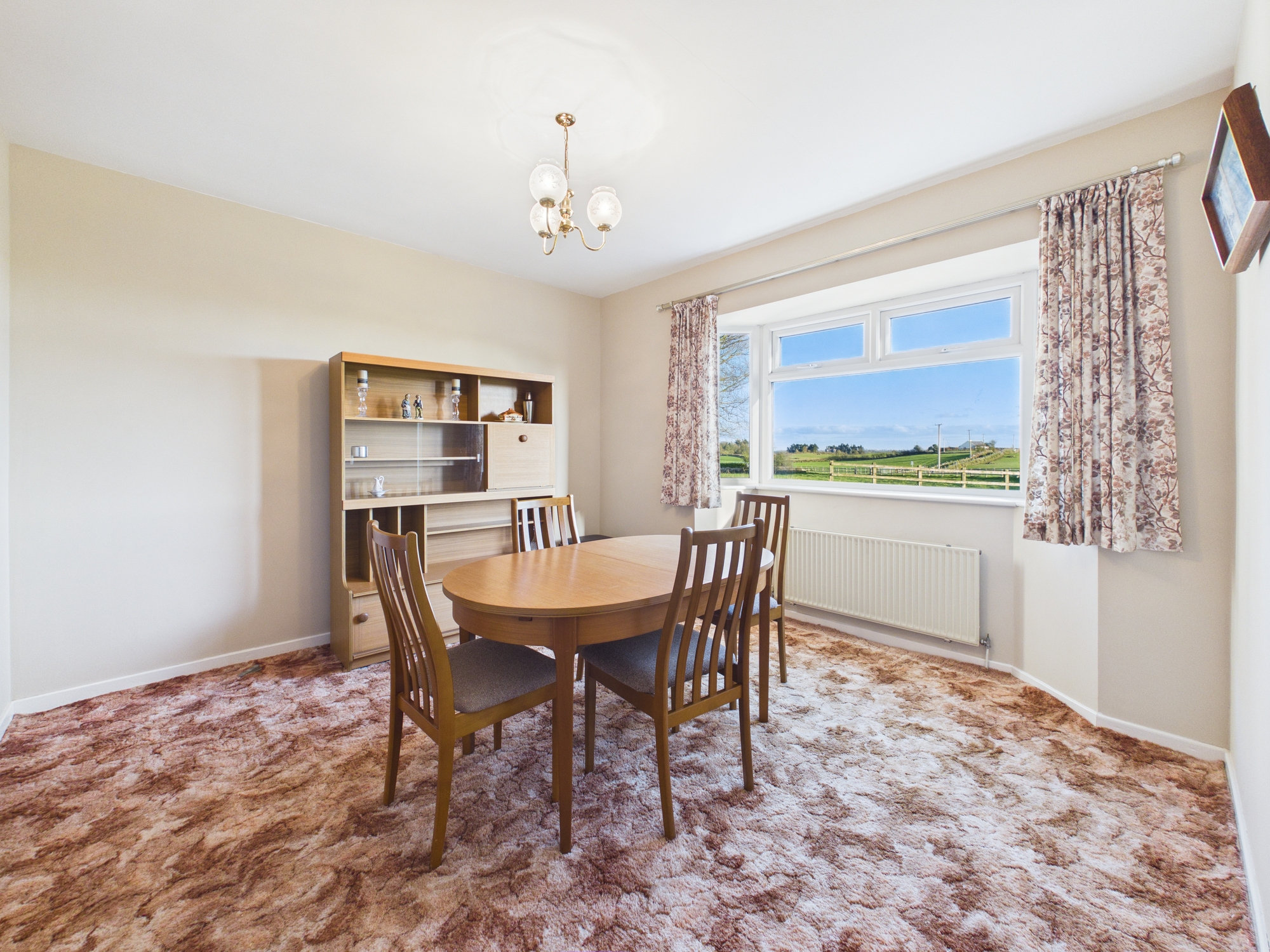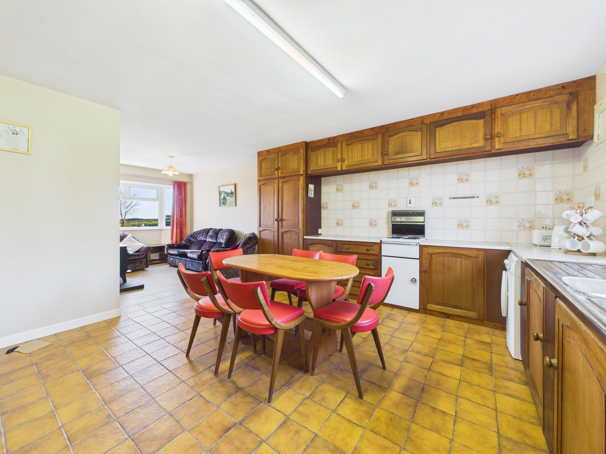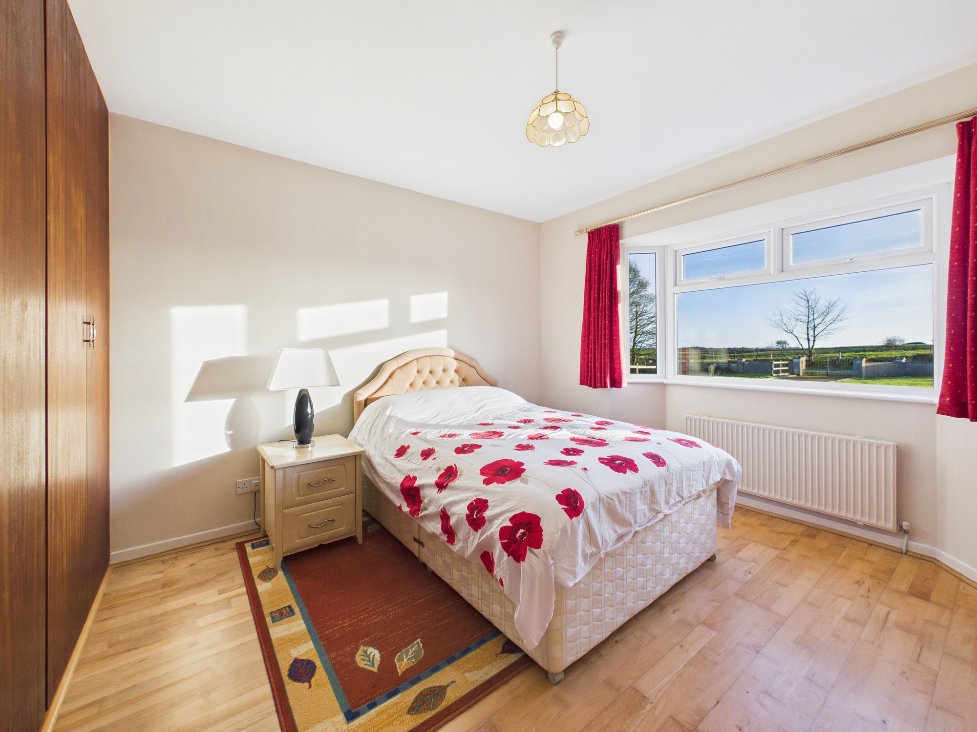 Extending to approximately 159 sq. m, the residence is presented in excellent condition throughout. Accommodation comprises a spacious and welcoming entrance hall, a bright kitchen/living area with solid fuel stove incorporating back boiler, a dining room, and a comfortable sitting room with open fireplace and patio doors off to rear garden. There is also a tiled utility room with separate W.C., four generously sized double bedrooms with fitted wardrobes in three, and a recently fully tiled new family bathroom including walk-in shower and bath making this an ideal family home.